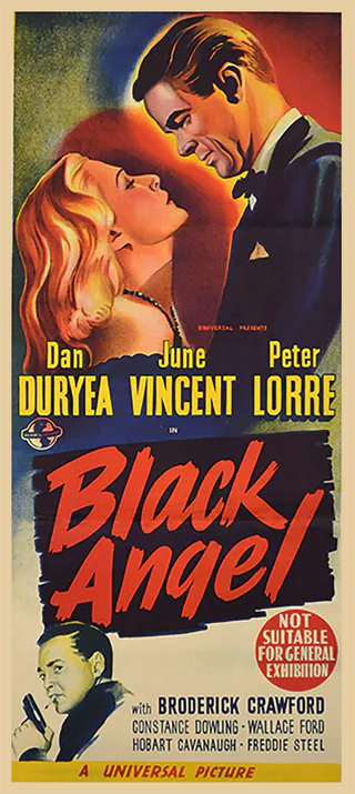 A man is sentenced to die for the murder of gorgeous actress, but the man’s wife (June Vincent) won’t give up trying to prove his innocence. She desperately enlists the aid of a pickled pianist on the skids (Dan Duryea) in the hopes of finding the real killer. A slick adaptation of a sordid Cornell Woolrich yarn.